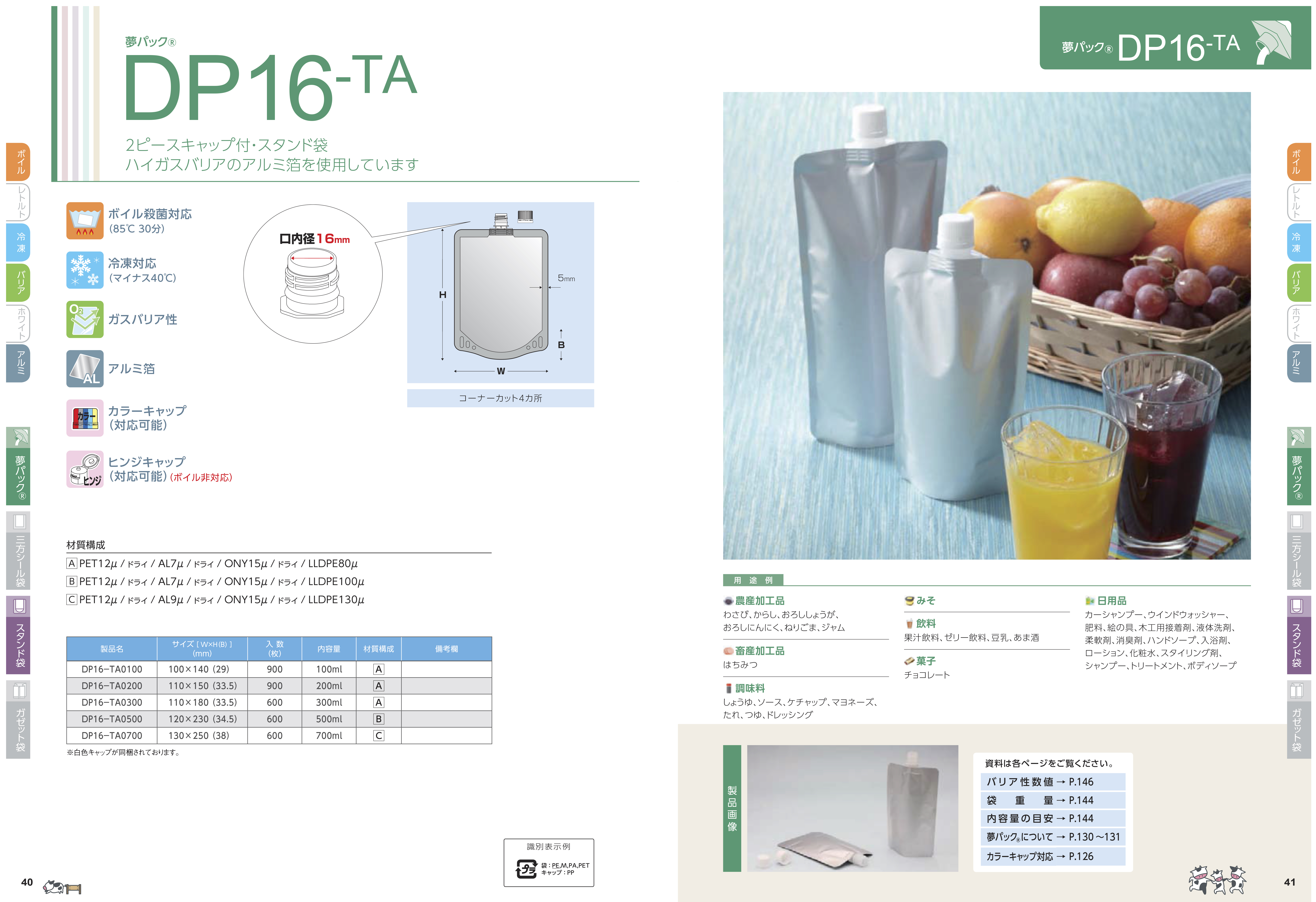 ご使用にあたっては実際の内容物を充填し、実用テストをしてご確認ください。